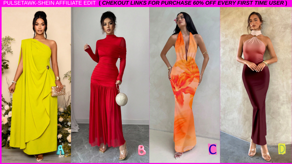 D. 💰Price[R316] 🛒Aloruh New Draped Ruched Shoulder Slim Fit Maxi Party & Holiday Dress